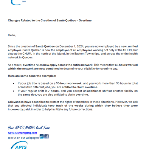 Miné·e·s par l’inquiétude, les membres de l’APTS MCQ interpellent Santé Québec