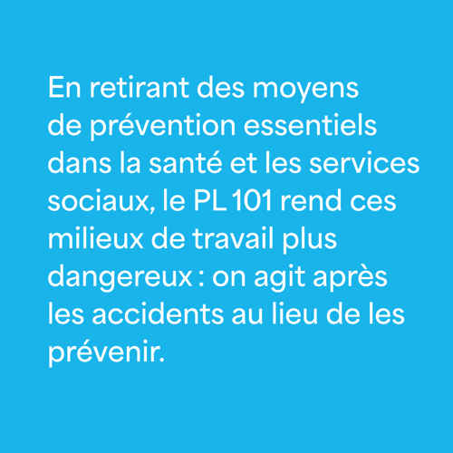 Le PL 101 affaiblit nettement les outils de prévention et la participation des travailleur·se·s de la santé et des services sociaux à la protection de leur santé et de leur sécurité au travail.