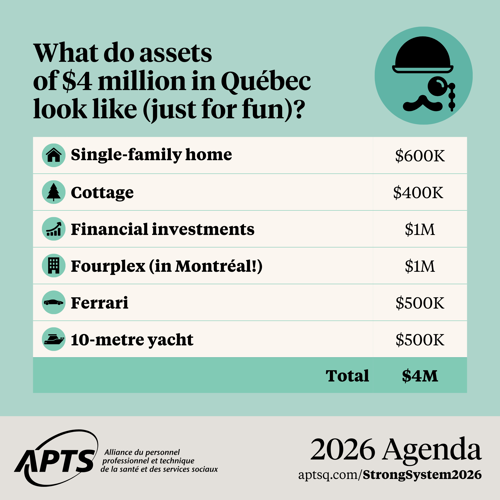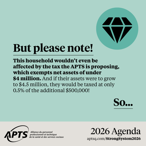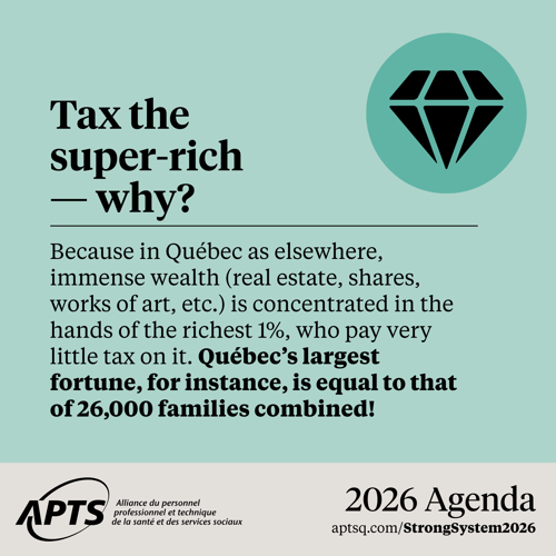 In 2026, the APTS is proposing a clear solution: asking the super rich to make a minimal contribution to ensure our public system has stable, appropriate funding. It’s a simple, fair and entirely feasible measure to make health a real priority.