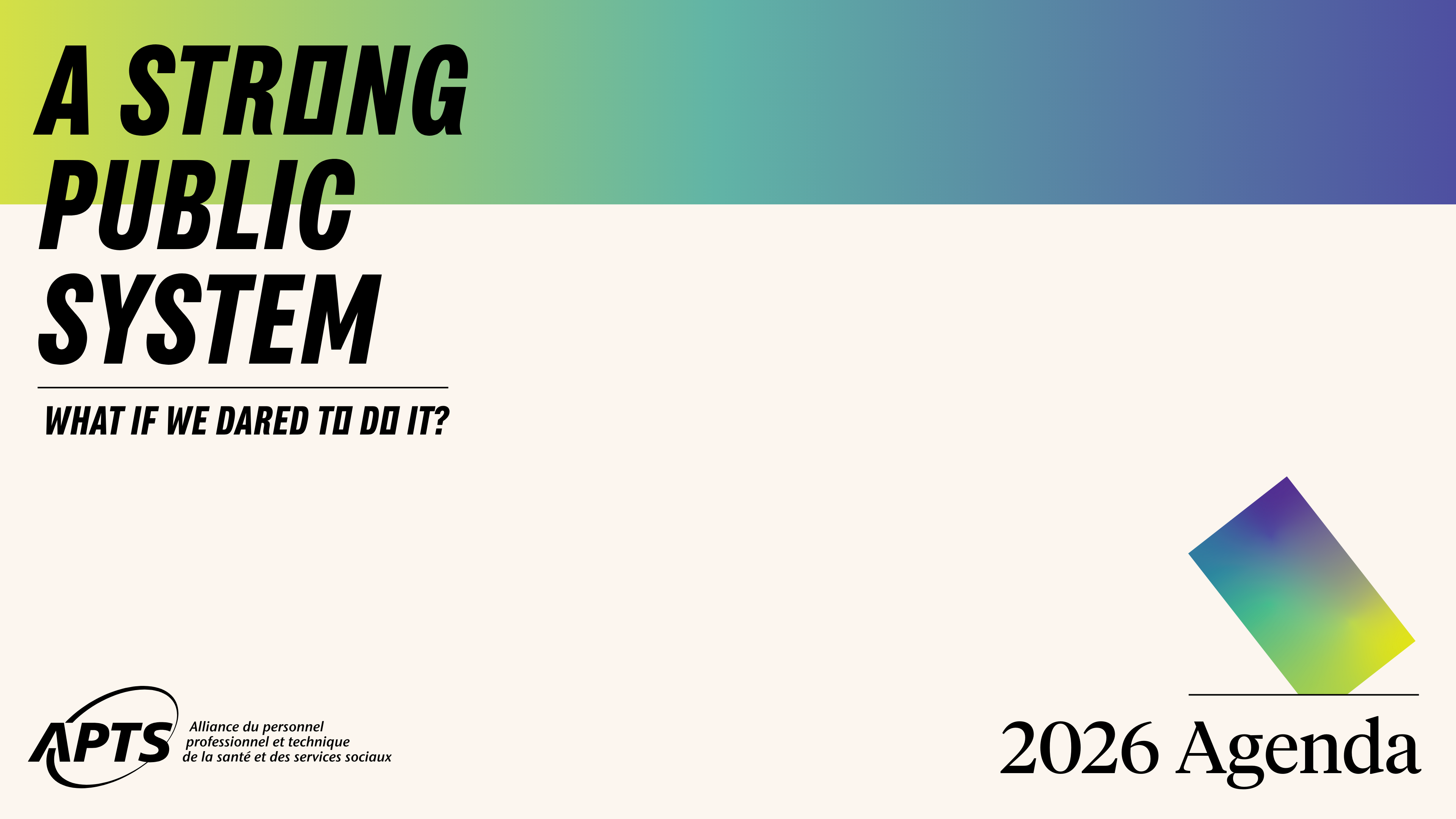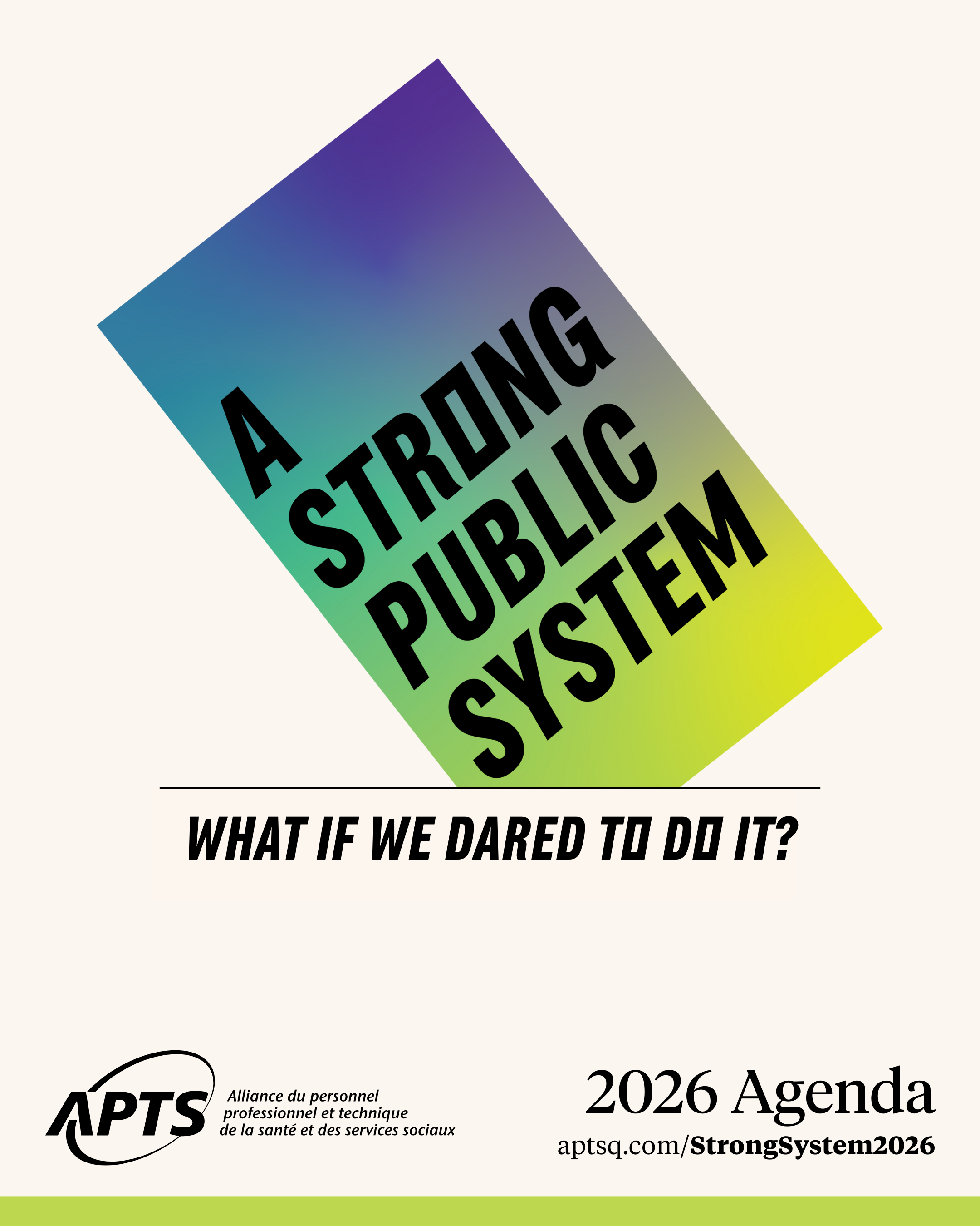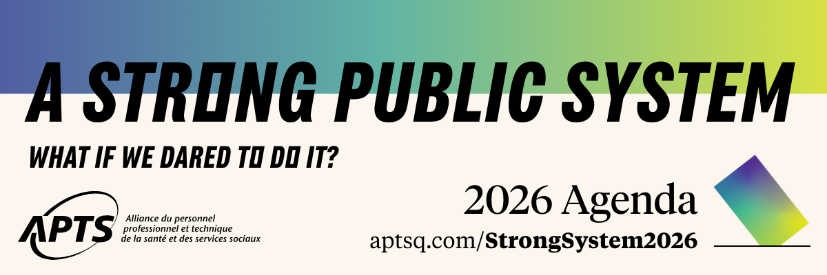 The austerity that shapes our working conditions also affects the quality of services and Quebecers’ access to them. In 2026, the APTS dares to do something different: name the political choices leading to austerity, show that it is both avoidable and irresponsible, and put forward concrete solutions for a strong public system.