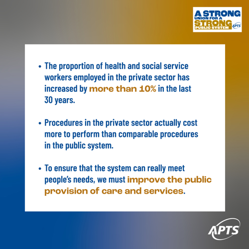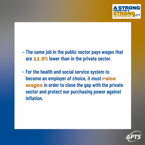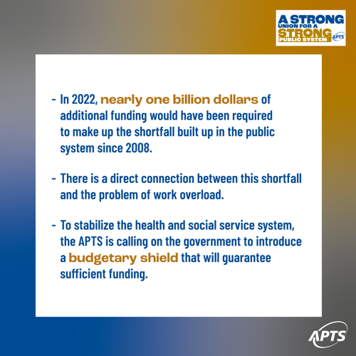 We’re excited to begin the next stage of our political campaign on the theme A strong union for a strong public system. The APTS is calling on elected representatives and senior managers of health and social service institutions to design bold policies that will provide Quebecers with public services that are accessible, inclusive, and based on equality.
