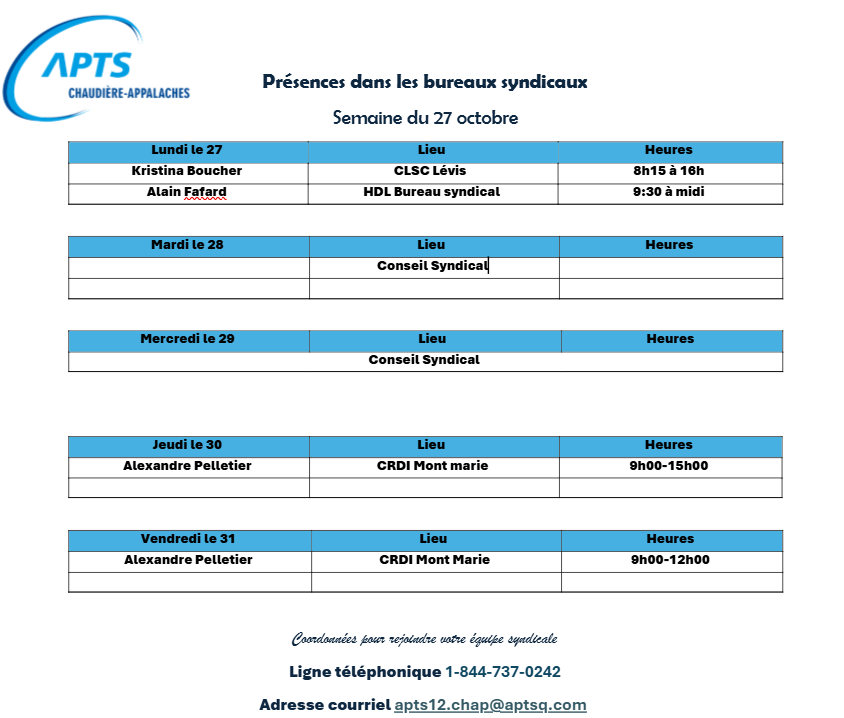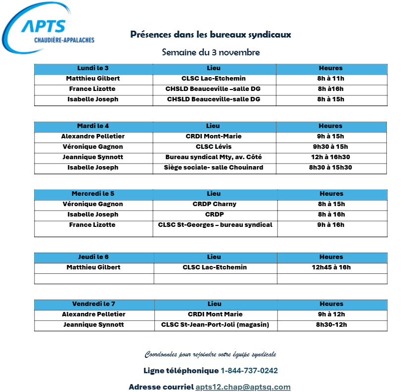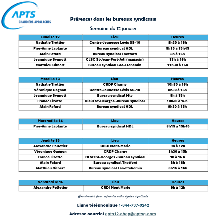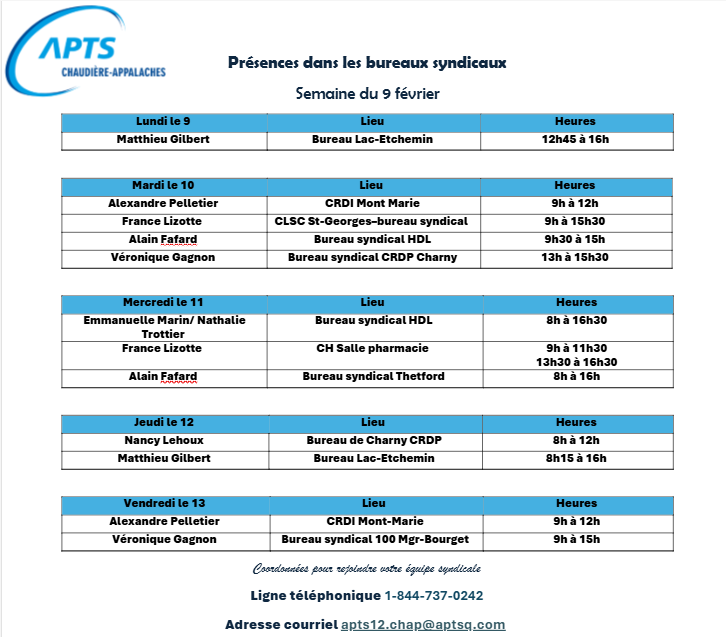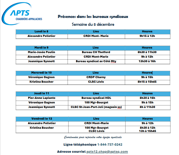 L'équipe APTS de Chaudière-Appalaches est composée de: