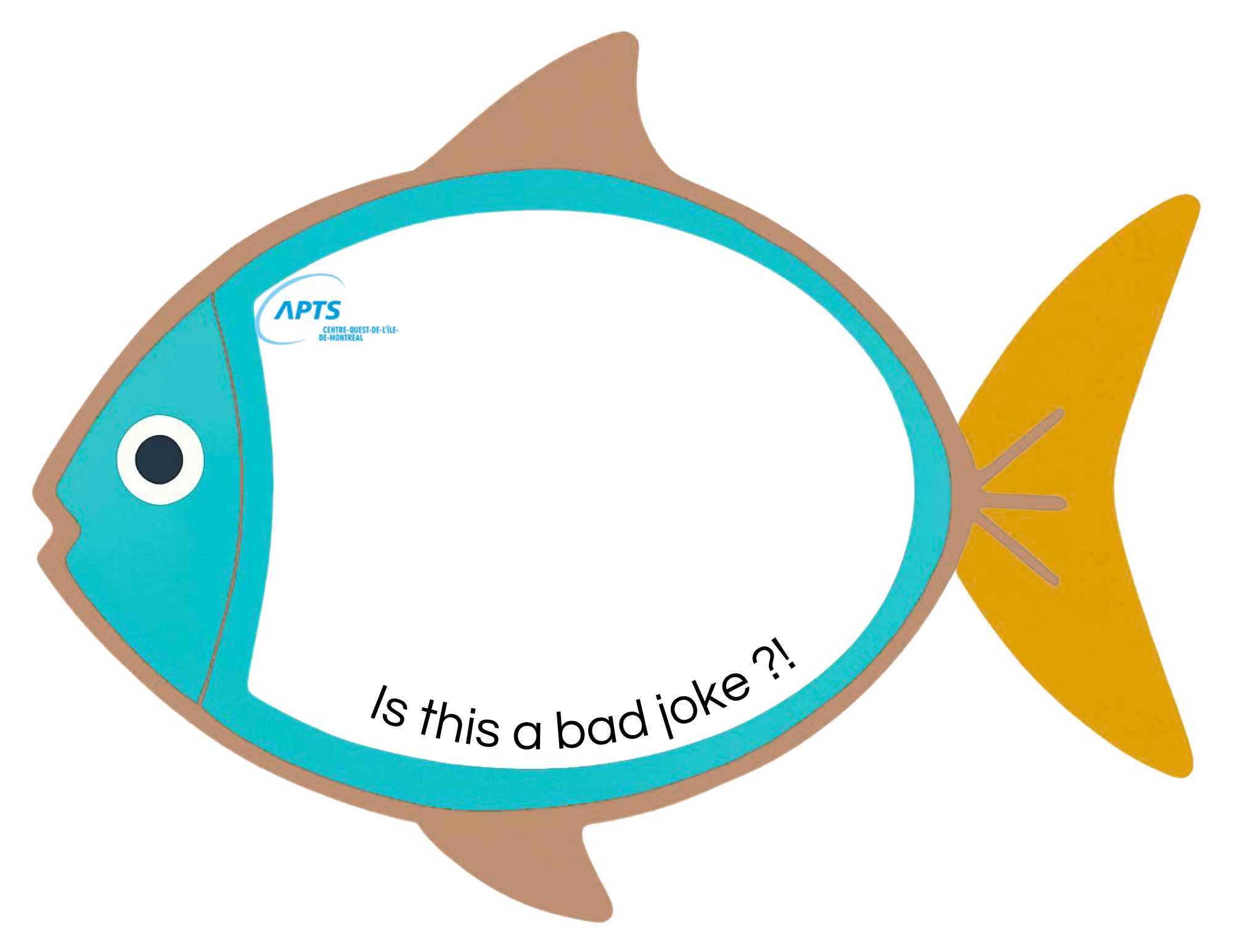 Nous vous invitons à découper les poissons joints à ce courriel, à les afficher sur le babillard syndical, et à y inscrire un slogan militant. Les slogans peuvent être en lien avec :