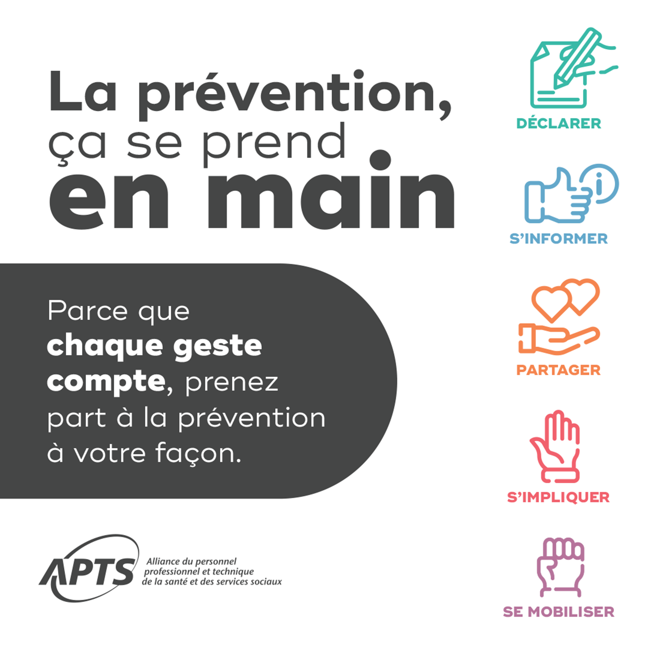 Saviez-vous que le secteur de la santé et des services sociaux compte pour 25 % des lésions acceptées par la CNESST, alors qu’il regroupe un peu moins de 10 % des lieux de travail au Québec? Cela veut dire qu’en tant que travailleur·se dans ce domaine, vous courez un risque disproportionné de subir un accident sur votre lieu de travail. Heureusement, tout le monde peut contribuer, à son échelle et à sa façon, à la santé et à la sécurité dans son milieu... Prêt·e à poser un geste?