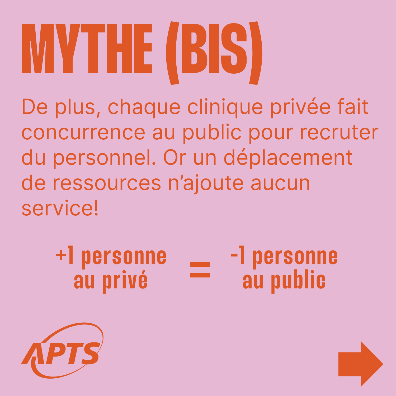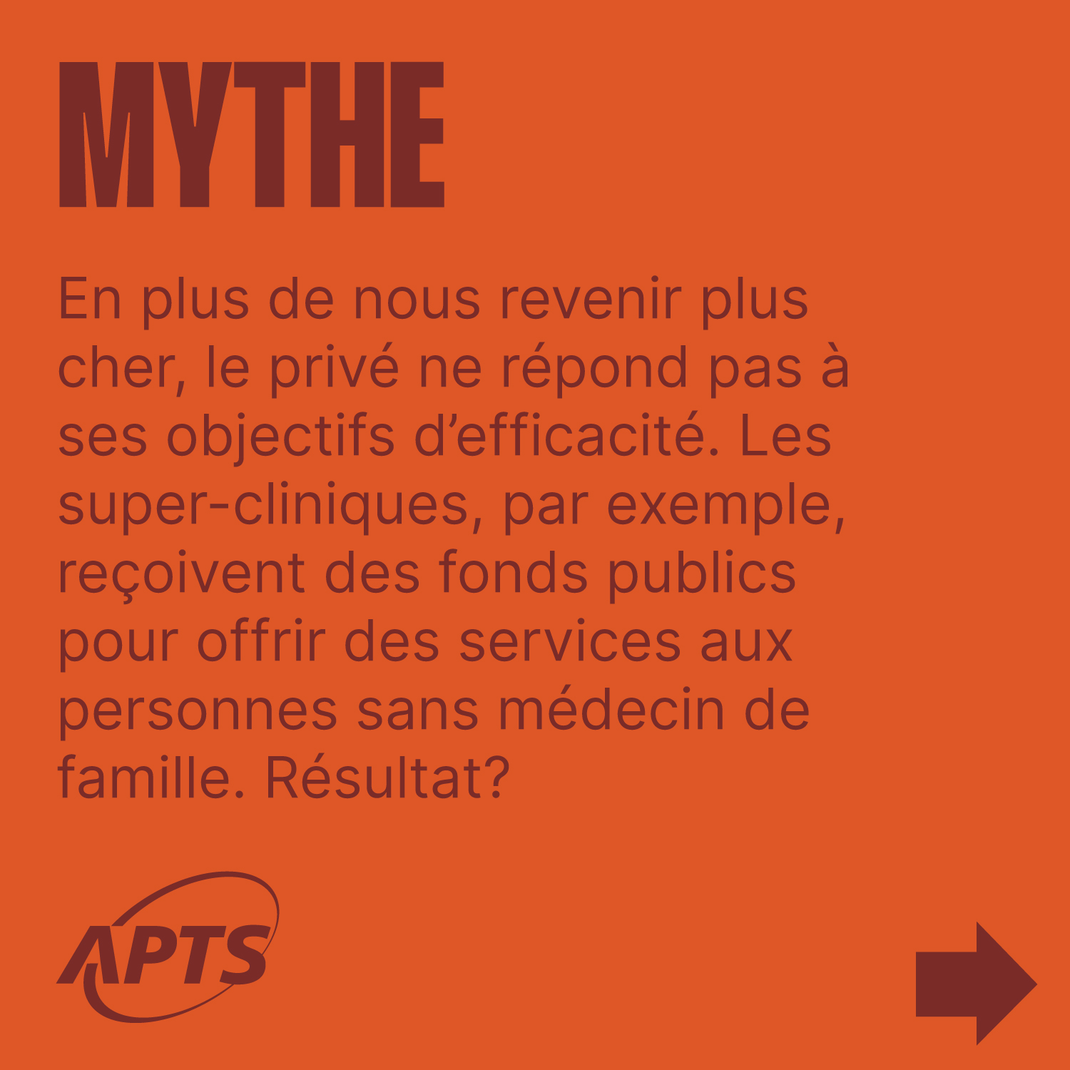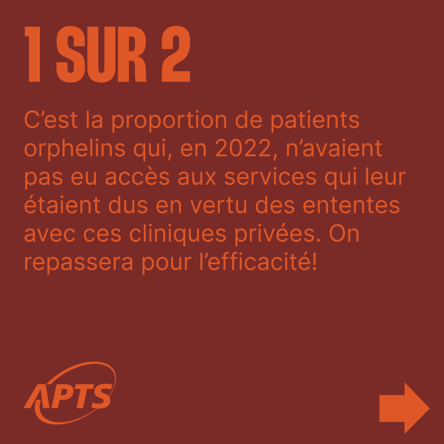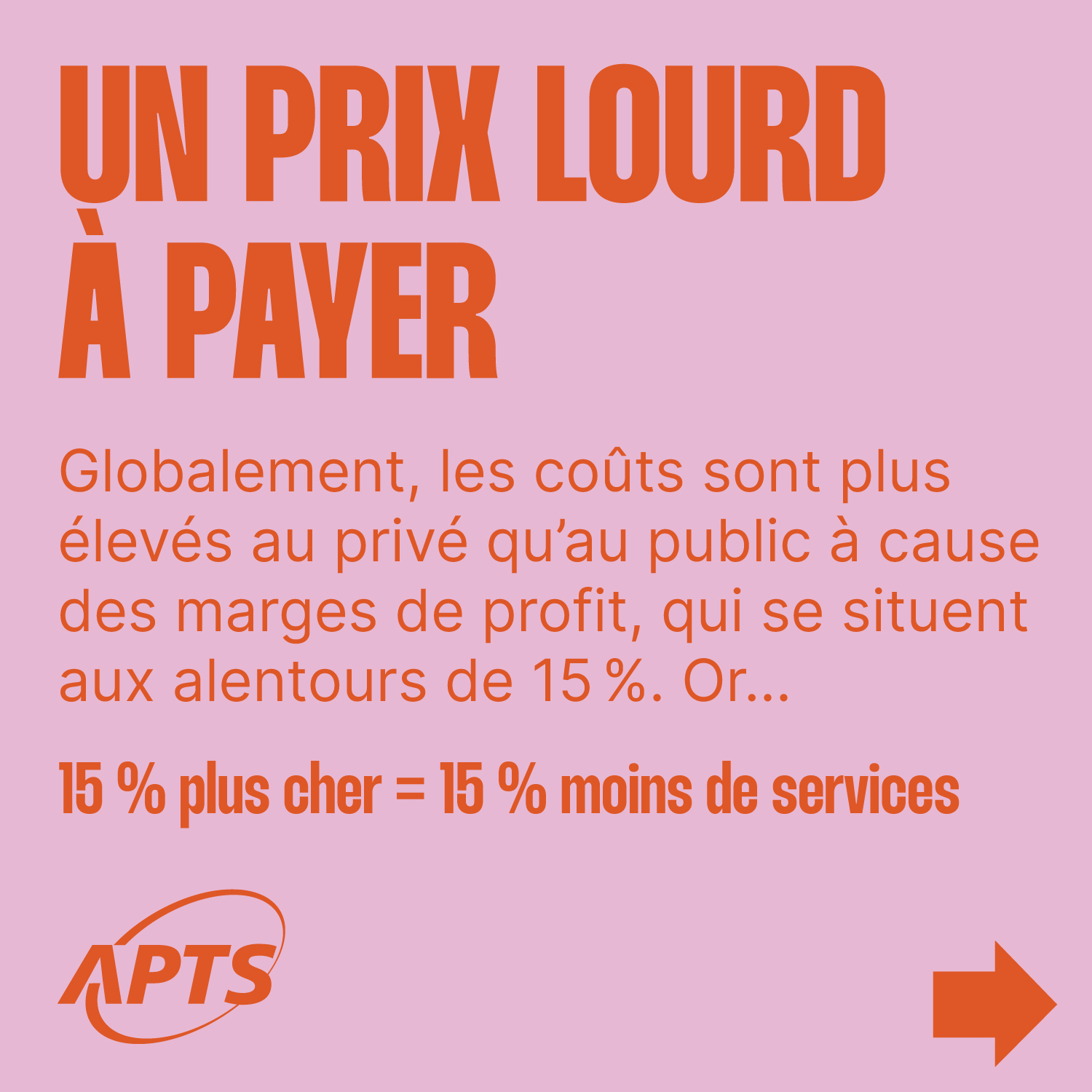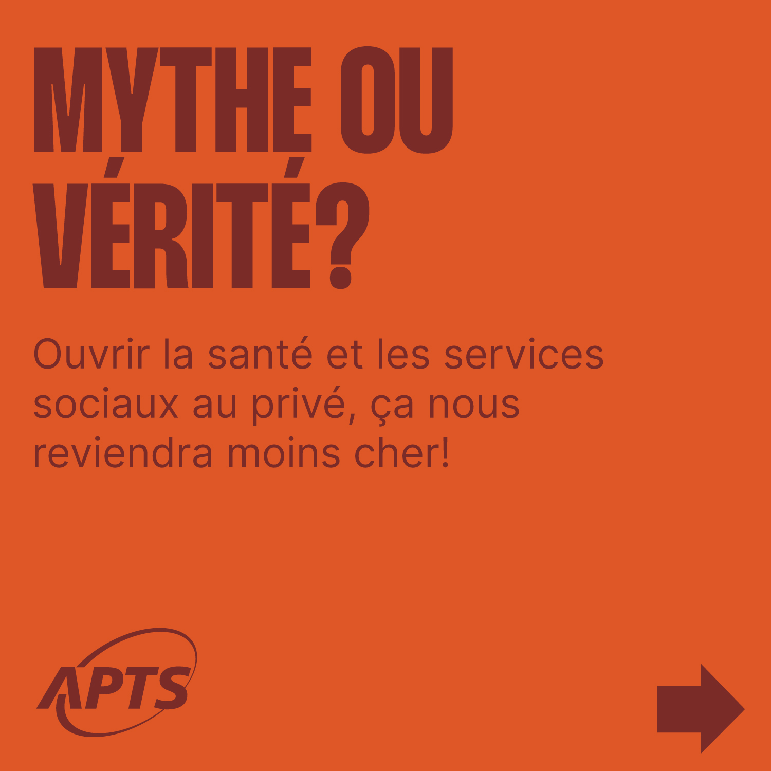 L'APTS revendique des mesures publiques audacieuses auprès des élu·e·s du Québec et des dirigeant·e·s des établissements de santé et services sociaux afin d’assurer à la population une offre de services publics, accessibles, inclusifs et égalitaires. Le ministre Dubé, de son côté, recycle une vieille recette en ouvrant la porte toute grande au privé, invoquant des arguments pour le moins douteux.